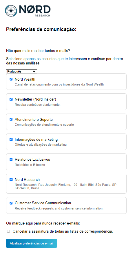 Vale ressaltar, que ao baixar ou acessar qualquer tipo de conteúdo relacionado à Nord, você passará a receber novamente os nossos conteúdos gratuitos via e-mail, sendo necessário realizar um novo descadastro manual.